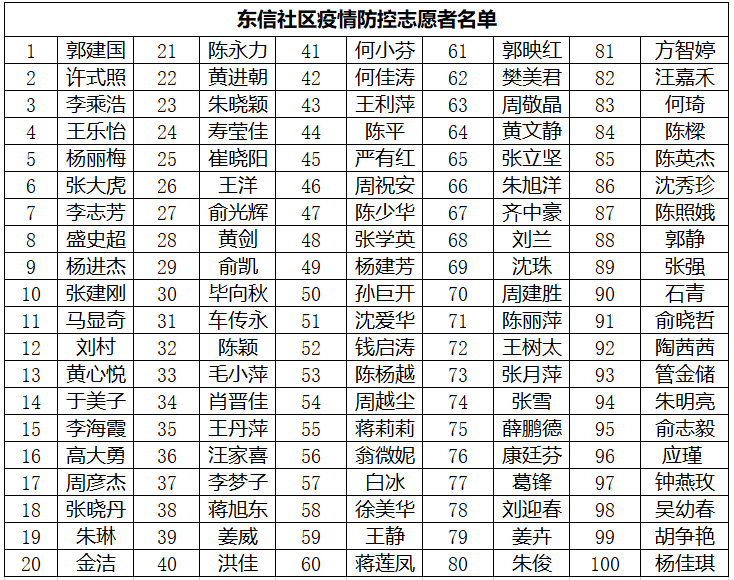 抗击疫情的集结号响起,东信社区于1月28日发布志愿者招募令,据不完全统计,本轮疫情东信社区共有100位居民志愿者以及50多位楼道长报名参加抗疫志愿服务。他们是最可爱的人,也是最可敬的人。