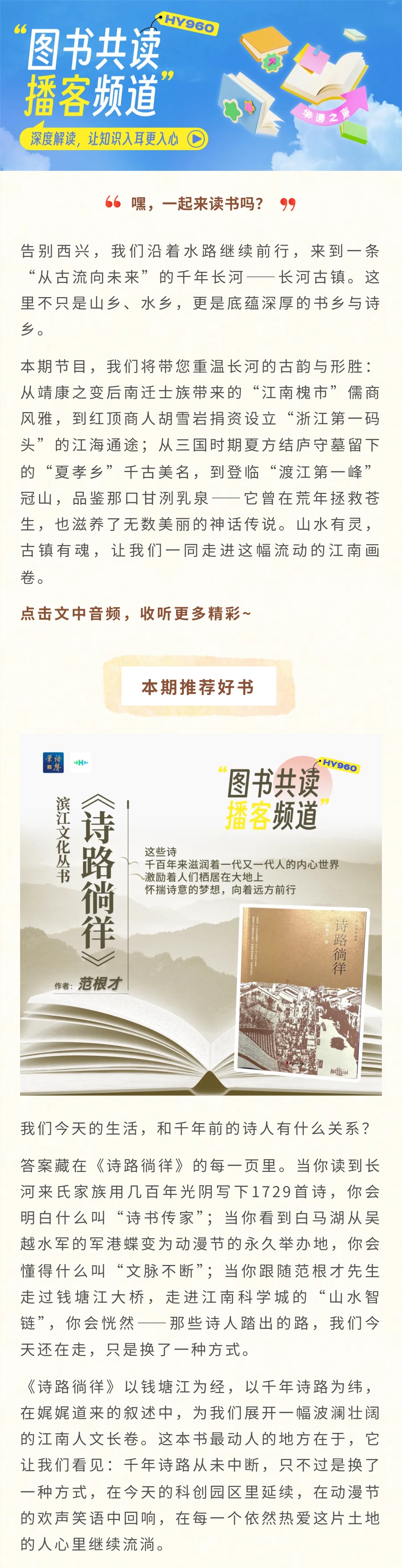 吴芸老师荐好书作者简介: 吴芸,中国散文学会会员,中国报告文学学会会员,浙江省作家协会会员,著有散文集《芸香世界》,作品入选年度散文精选和中学生阅读题库。 2013年,吴芸老师在水秀苑社区成立了“芸文化”工作室。近十年,“芸文化”工作室开展了公益讲座几十个,深受人们喜爱。工作室于2015年被评为“杭州市示范社区学习共同体”。 “杭州市优秀传统文化丛书”宣传点是“芸文化”工作室的品牌项目之一,一个点设在西湖区水秀苑社区,另一个点设在“云泊天目”山庄,期望更多人了解与热爱杭城优秀传统文化! 在2023年世界读书日来临前夕,为了与更多读者朋友分享好书,吴芸老师开设“荐好书”栏目。以书会友,共建我们自己的心灵家园!谢谢大家聆听! -