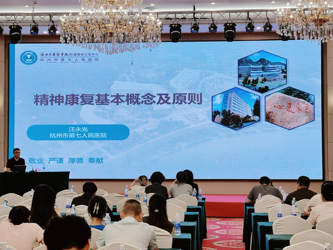 下午场培训由杭州市第七人民医院精神三科主任汪永光博士压轴授课,围绕《心理健康概论》《精神康复基本概念及原则》《网络成瘾诊疗》三大主题展开系统讲解。在心理健康概论部分,汪永光博士用“我国焦虑、抑郁障碍居精神心理问题前两位”“全球每年近80万人自杀”“15-19岁青少年自杀为该年龄段第三大死因”等严峻数据敲响警钟,结合2020年全国调查强调心理健康已成为国民健康主要需求,并解读国家相关政策布局;在精神康复板块,他以精神分裂症为例,披露患者康复现状,详解个体化、协同化康复原则及社会认知与互动训练(SCIT)的应用;在网络成瘾诊疗部分,他结合自身研究拆解游戏设计中的“心流理论”“损失厌恶”等心理机制,介绍网络游戏障碍“12个月内出现至少5项症状”的诊断标准,强调共病问题的重要性,并呼吁家庭、学校、社会形成干预合力。