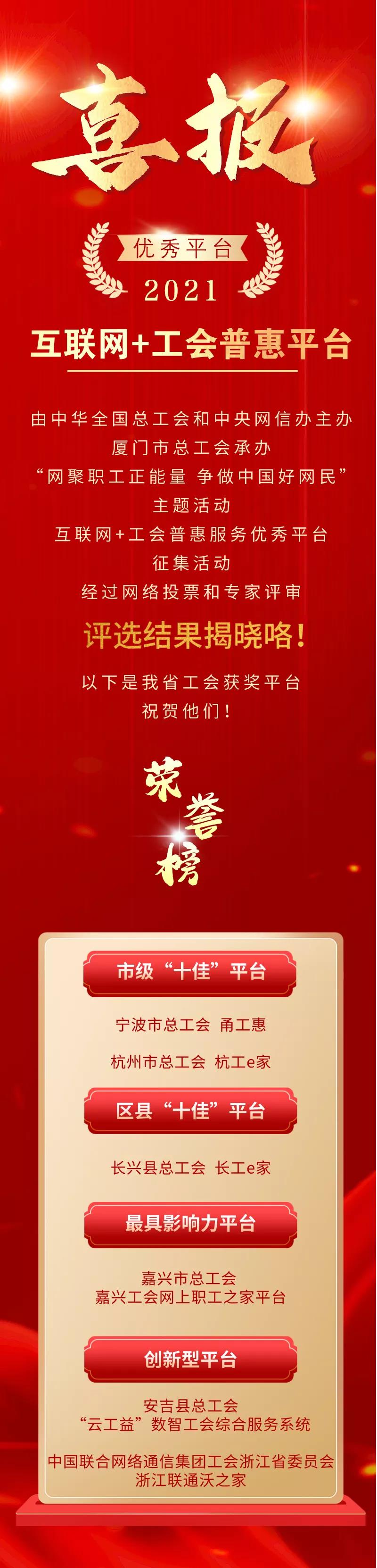 喜报!浙江工会6个平台获奖!2021互联网+工会普惠服务优秀平台发布