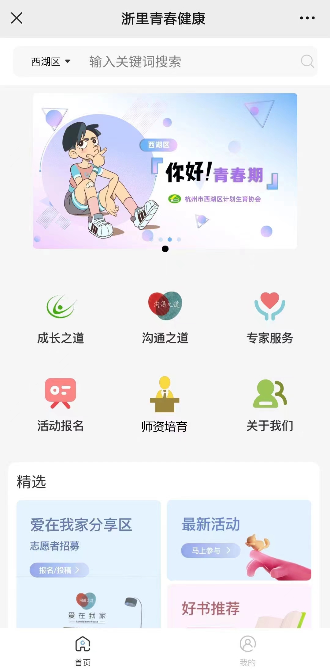 “你好,青春期”青春健康数字应用场景主要面向青少年和青少年家长提供科学、适宜、专业的性与生殖健康教育服务。该场景在“健康西湖”微信公众号上线,共设有“成长之道、沟通之道、专家服务、活动报名、师资培育、关于我们”六大版块。