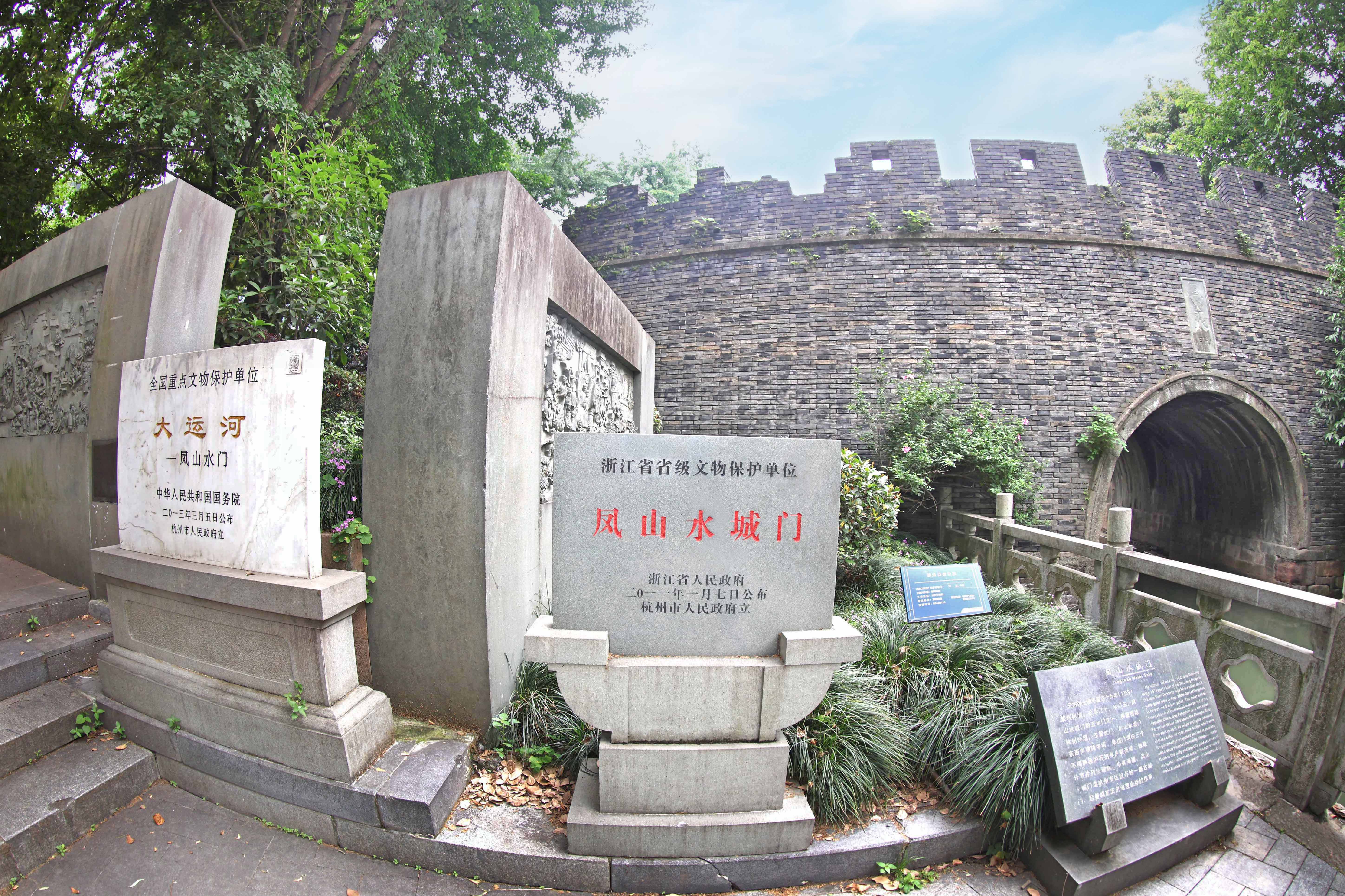 凤山门原有水陆两门,陆门被毁已不复存在;水城门建于元至正十九年(1359),是杭州唯一真实存在的古城墙和古城门,现为全国重点文物保护单位,也是世界文化遗产——中国大运河的遗产点之一。