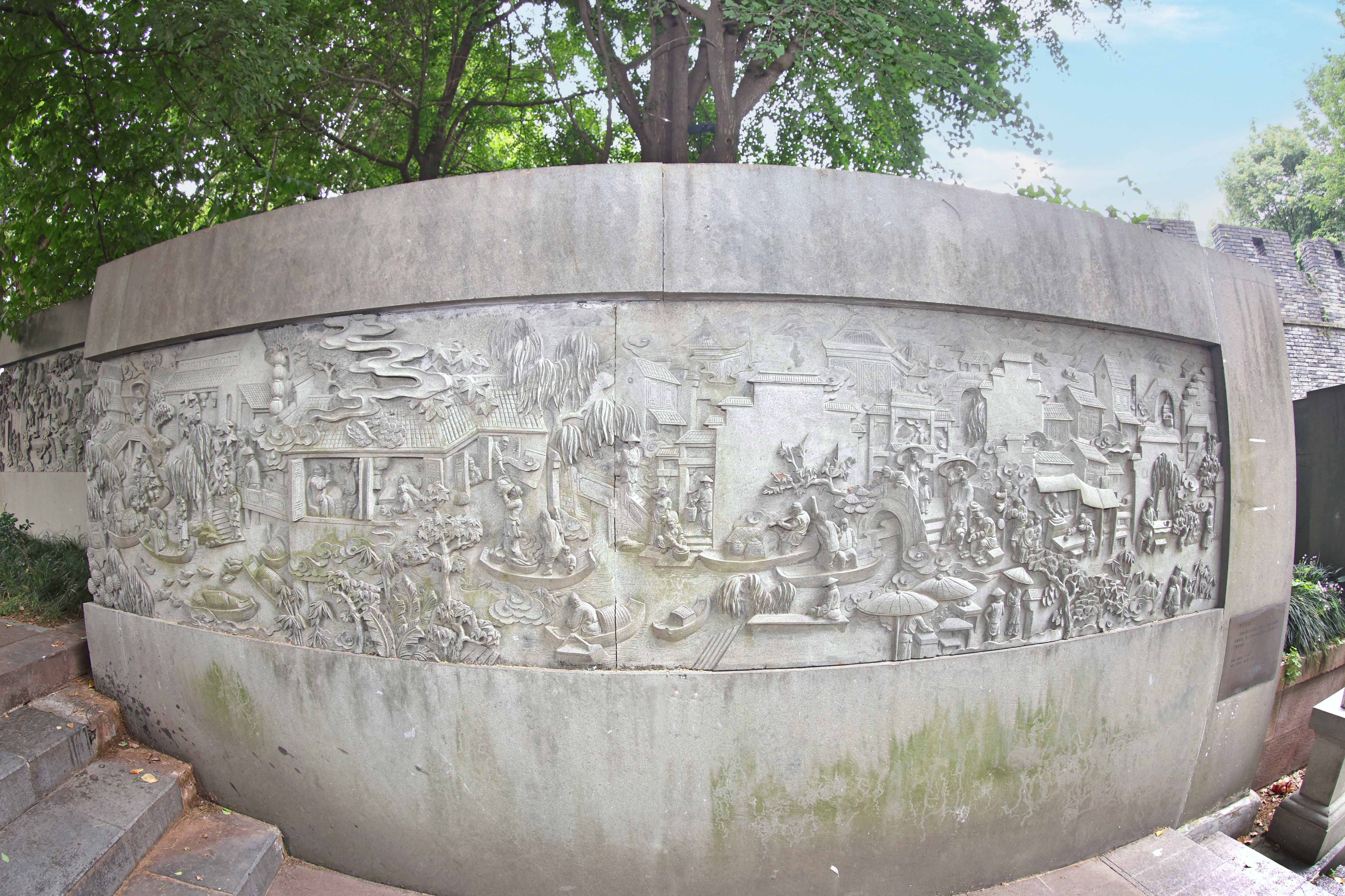 目前,水门东西向横跨中河,城墙总厚度12.3米,残存长22.49米,单孔拱门以纵联分节并列法砌筑,中有闸槽,闸石及门扇现已缺失,南面拱券上方嵌有“凤山水门”石刻竖碑。城门靠近中山南路侧断头处,重新修葺了2.2米高的三道浮雕墙,婚嫁、市井、码头场景栩栩如生,还原了水城门边旧时杭州人的生活日常。
