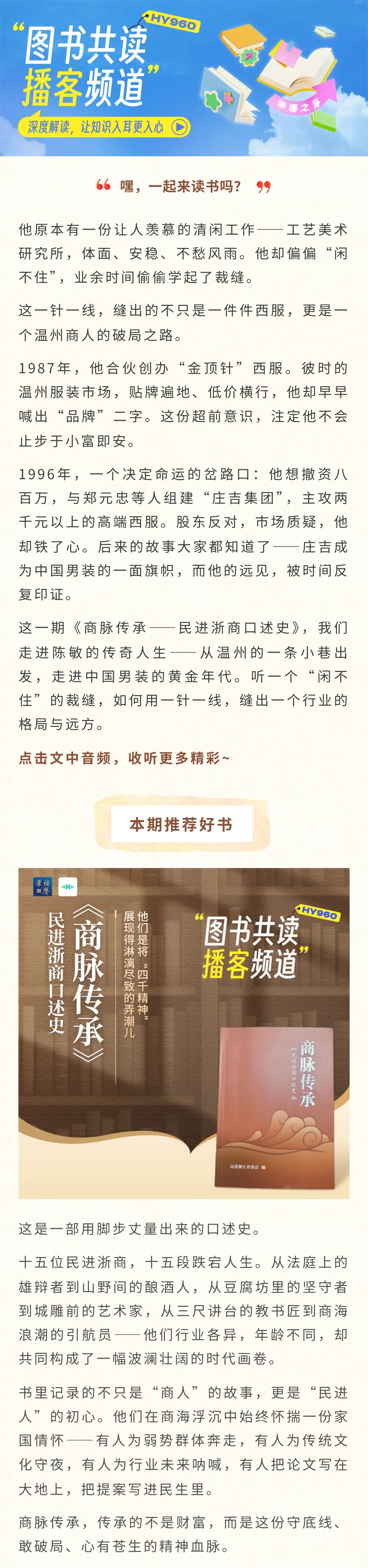 《商脉传承——民进浙商口述史》丨陈敏: 从“金顶针”到“庄吉”,一个温州裁缝的破局与格局
