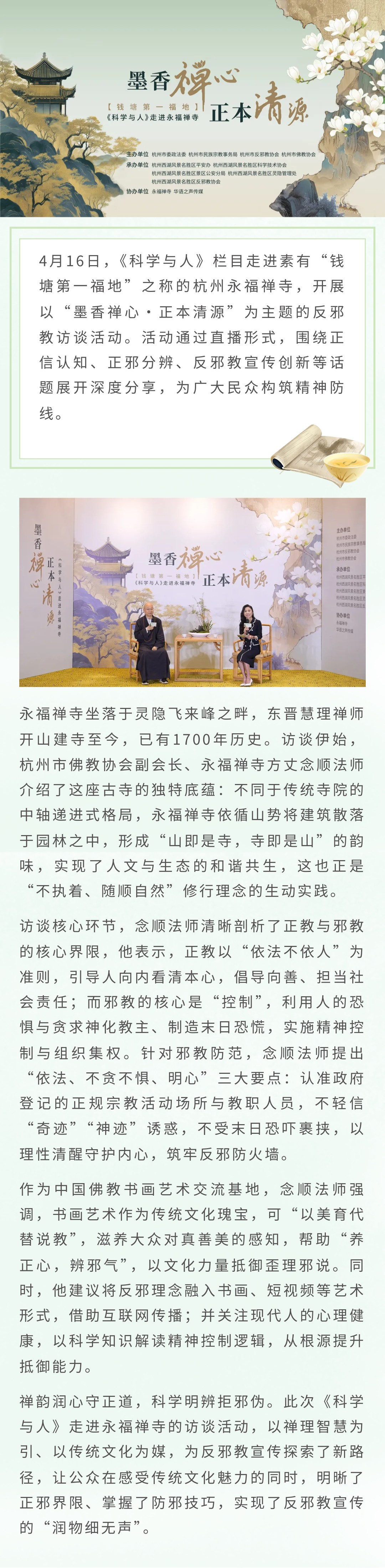 墨香禅心・正本清源丨《科学与人》走进钱塘第一福地